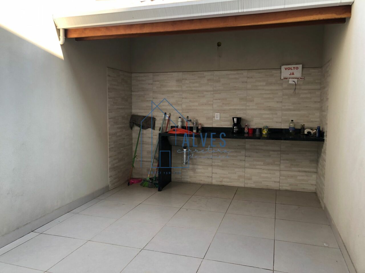 área já preparada para receber uma churrasqueira com bancada e pia Excelente para momentos de lazer.